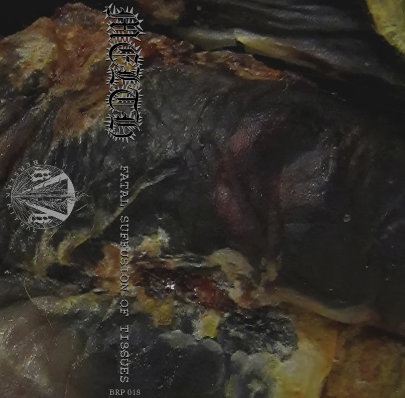 Melth, their new brainchild, is actually a combination of the slightly more classic sounding Canadian Bestial Black/Death Metal of Gotthammer with the sonic violence of both Complot! and Kiloton. The result is, and it may not really surprise, rather disturbing. The first result of their renewed musical collaboration under this moniker is this 15-minute digital debut demo tape, ‘Fatal Suffusion Of Tissues’. If there was still any shadow of doubt, the cover art chosen for this first demo is reminiscent of early Carcass or bands such as Lymphatic Phlegm, Last Days Of Humanity, Dead Infection, etc. Although musically of a different order, the result is largely the same.