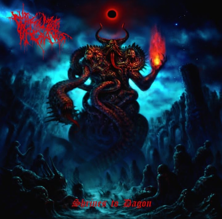 What ‘Shrines to Dagon’ album offers us is highly skilled, impeccable executed Dissonant Death Metal with chaotic, swirling riffs; unpredictable song structures; heavy use of atmosphere; bursts of raw, claustrophobic aggression and inhuman dual vocal styles ranging from shrieks to guttural bellowing. Musical themes are the aforementioned Lovecraftian horror, cosmic dread, atmospheric immersion, surreal and nightmarish visions.